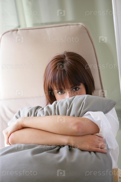 Женщина, обнимающая подушку