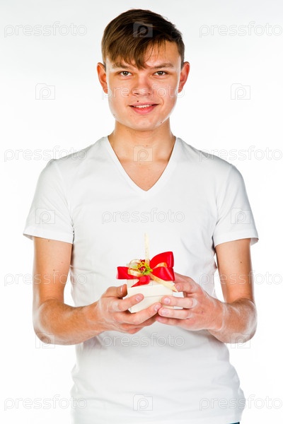 Молодой симпатичный мужчина с подарком