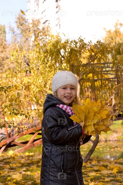 Милая девочка в осеннем парке