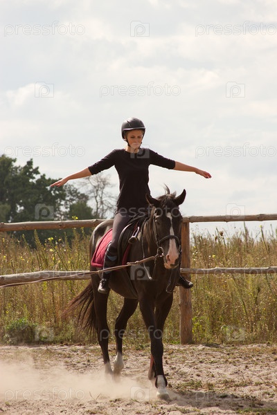 Девушка занимается верховой ездой