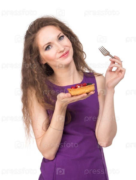 Женщина ест пирожное
