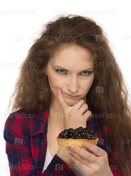 Женщина, одетая в стиле кантри, с пирожным