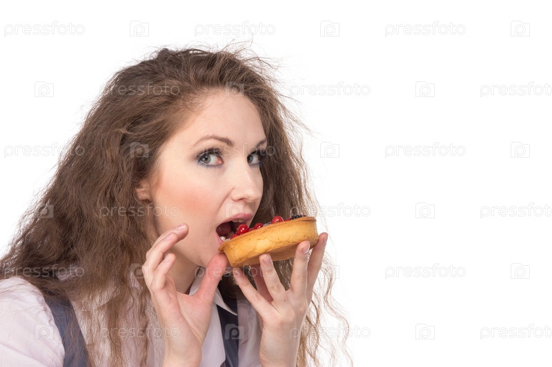Женщина ест пирожное