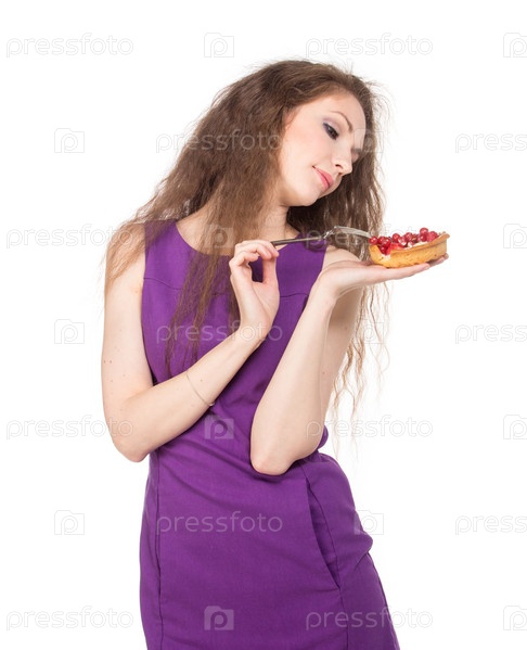 Женщина ест пирожное