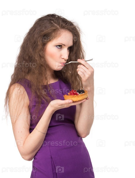 Женщина ест пирожное