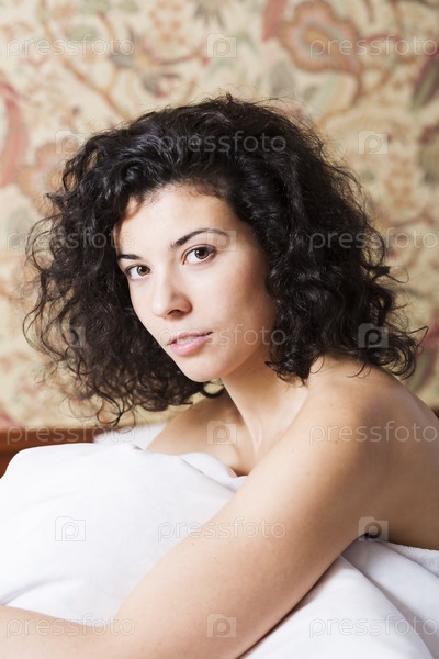 Серьезная женщина в мягком одеяле