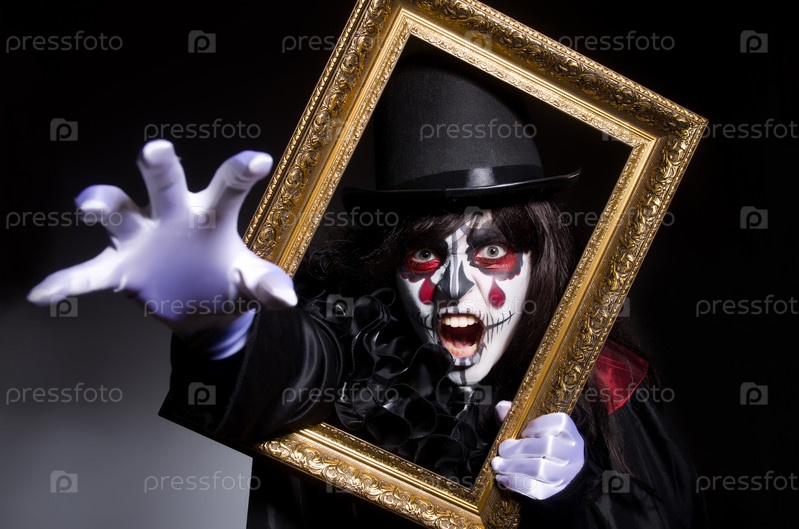 Монстр с фоторамкой в темной комнате