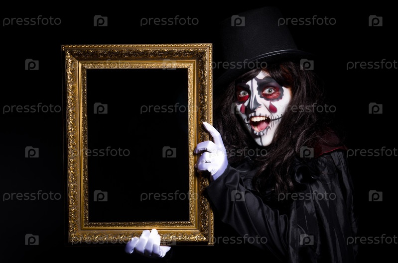 Монстр с фоторамкой в темной комнате
