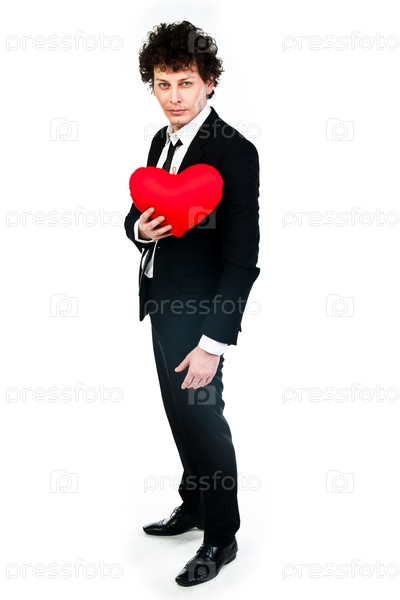 Молодой мужчина с красным плюшевым сердцем