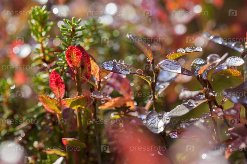Листья после дождя на солнце