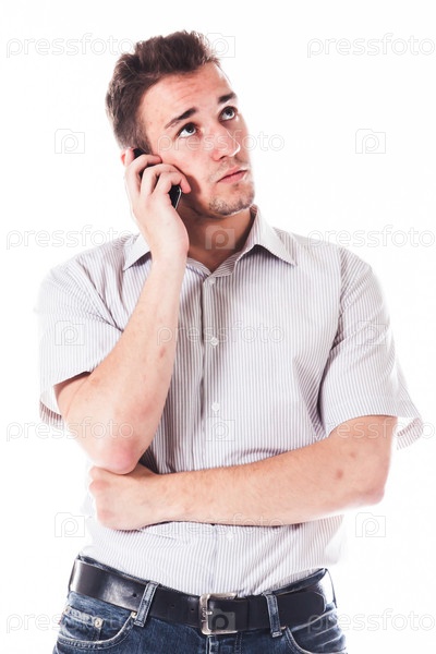 Молодой симпатичный мужчина говорит по телефону