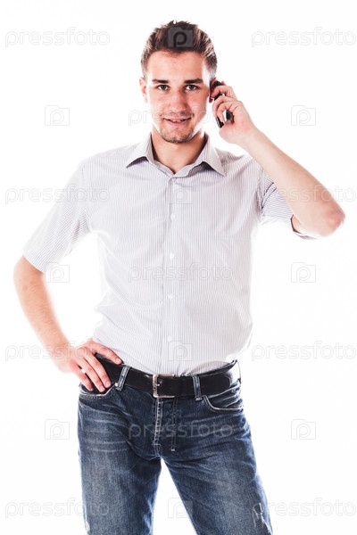 Молодой симпатичный мужчина говорит по телефону