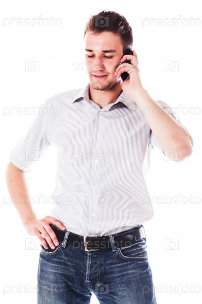 Молодой симпатичный мужчина говорит по телефону