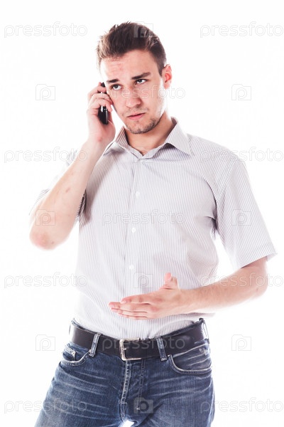 Молодой и симпатичный мужчина говорит по телефону