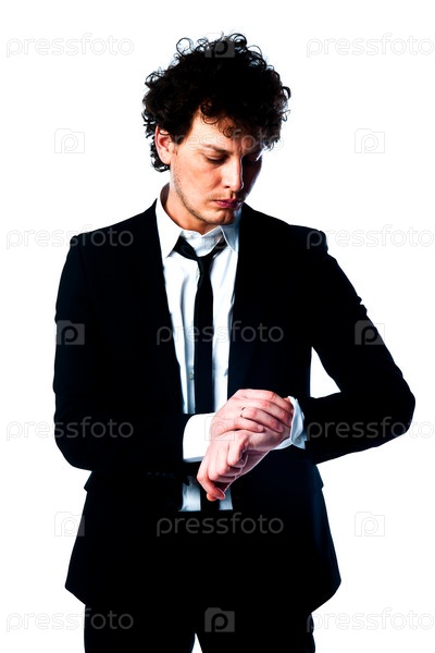 Молодой и успешный деловой мужчина в строгом деловом костюме темного цвета