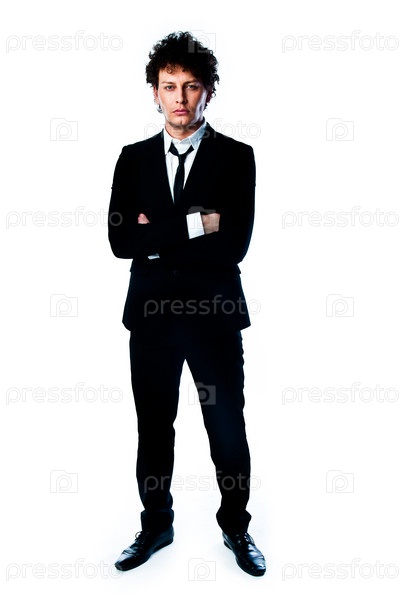 Молодой и успешный деловой мужчина в строгом деловом костюме темного цвета
