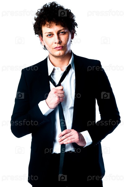 Молодой и успешный деловой мужчина в строгом деловом костюме темного цвета