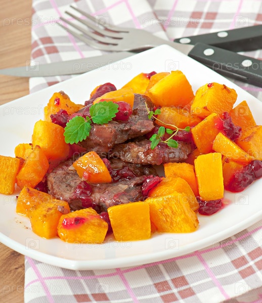 Тыква, запеченная с мясом и овощами