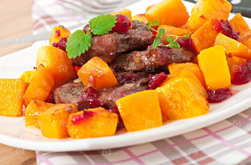 Тыква, запеченная с мясом и овощами