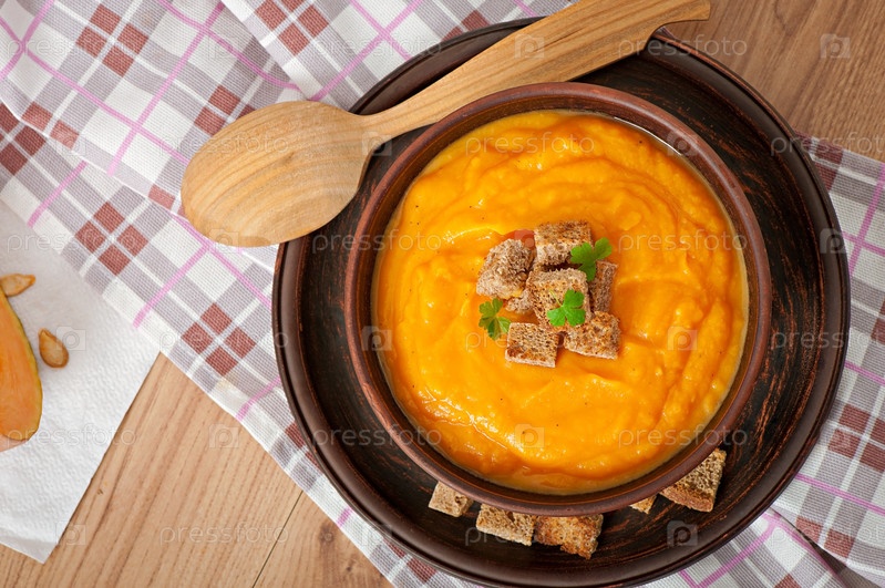 Тыквенный суп с гренками