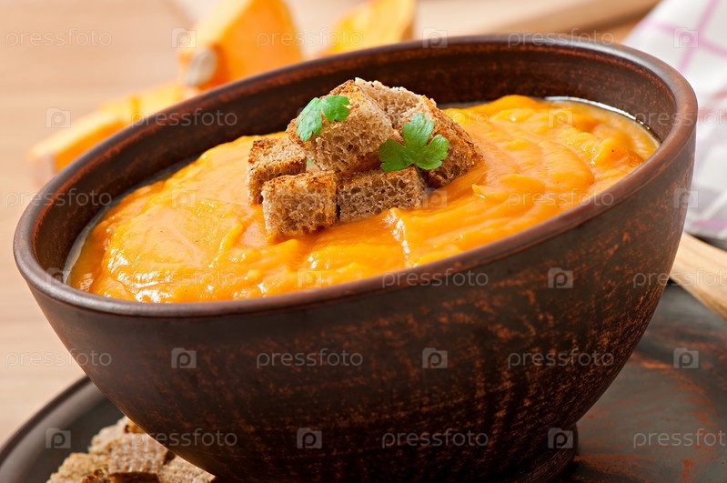 Тыквенный суп с гренками
