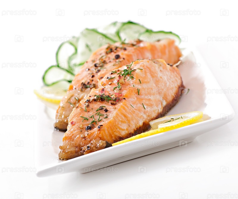 Рыбное блюдо. Лосось с овощами, приготовленный на гриле