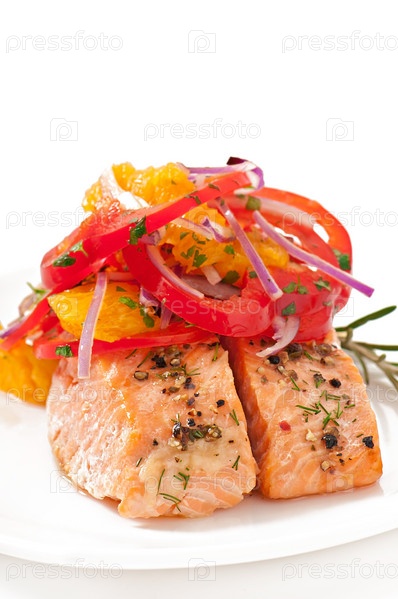 Запеченный лосось с салатом из сладкого перца и апельсинов