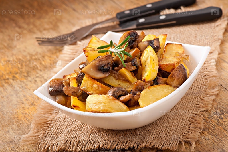 Жареный картофель с грибами и луком