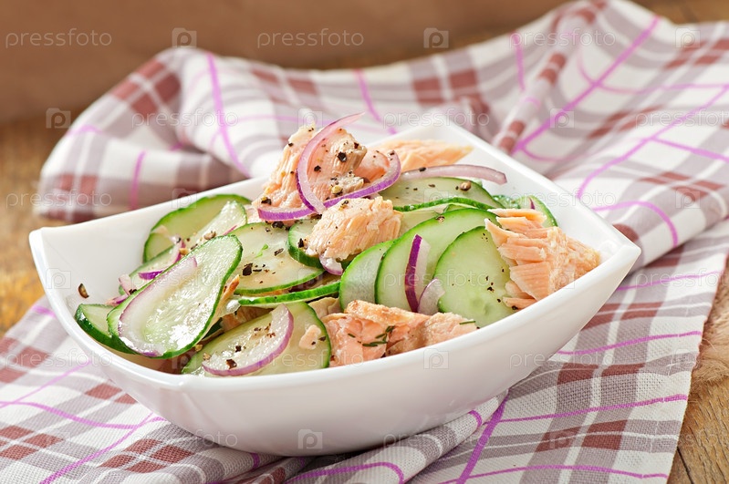 Салат с лососем, огурцом и медом