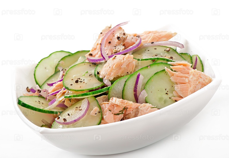 Салат с лососем, огурцом и медом