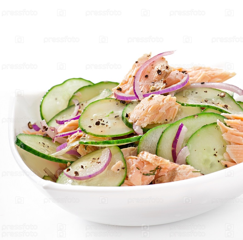 Салат с лососем, огурцом и медом