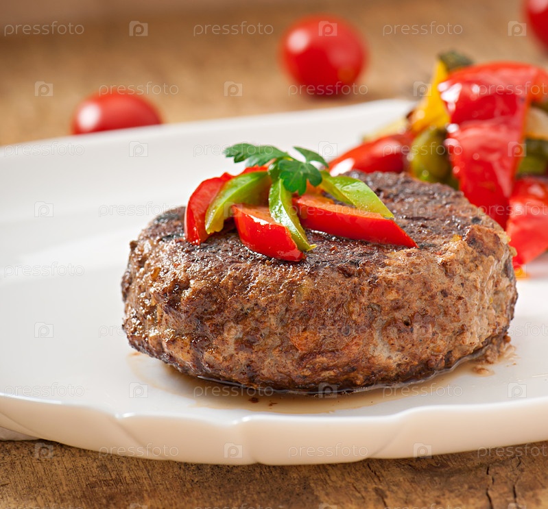 Гамбургер из говяжьего стейка с жареными овощами