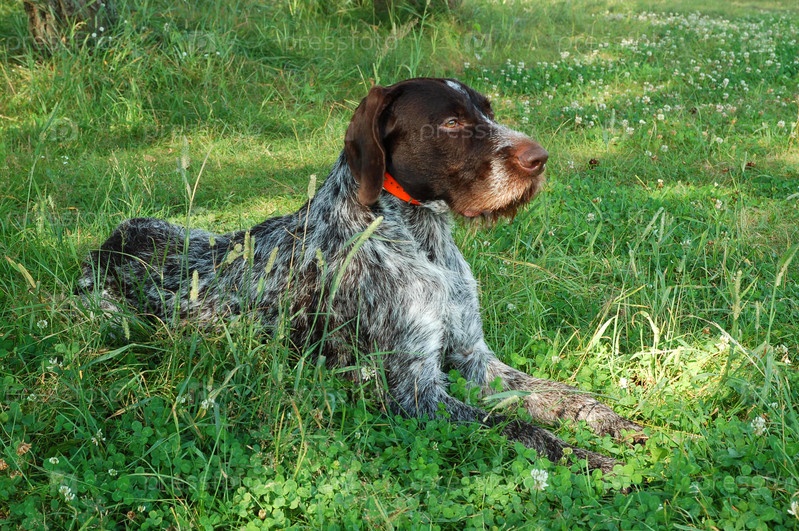 Немецкий проволочный указатель, отдыхающий в зеленой траве