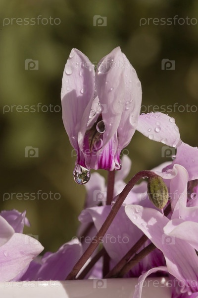Дикий цикламен (Cyclamen) с капельками дождя