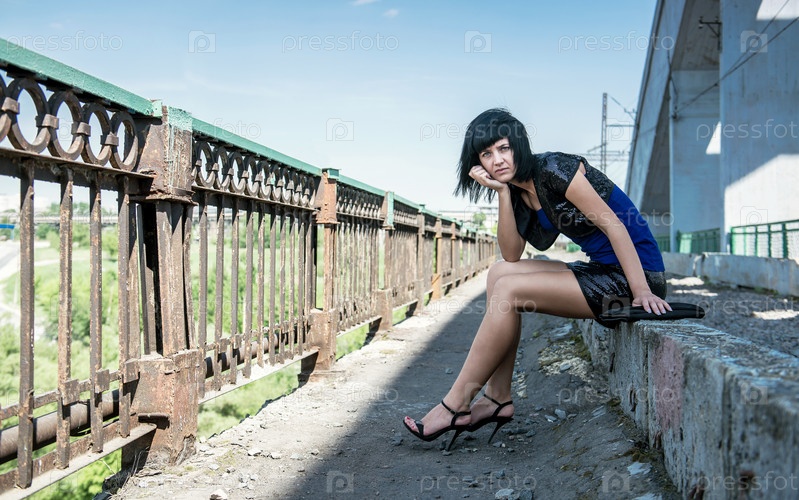 Задумчивая девушка на мосту