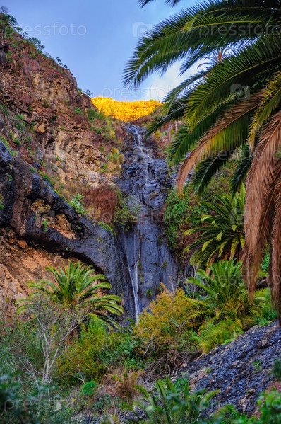 Водопад возле деревушки Маска и горы, Тенерифе, Канарские острова