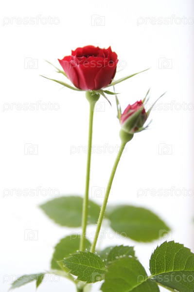 Красная чайная роза на белом фоне