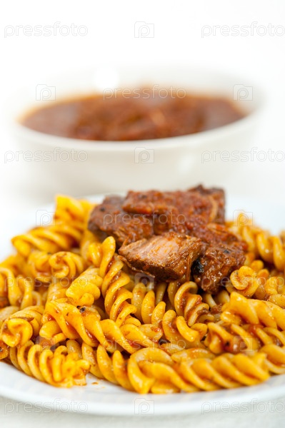 Макароны фузилли с мясным соусом по-неаполитански