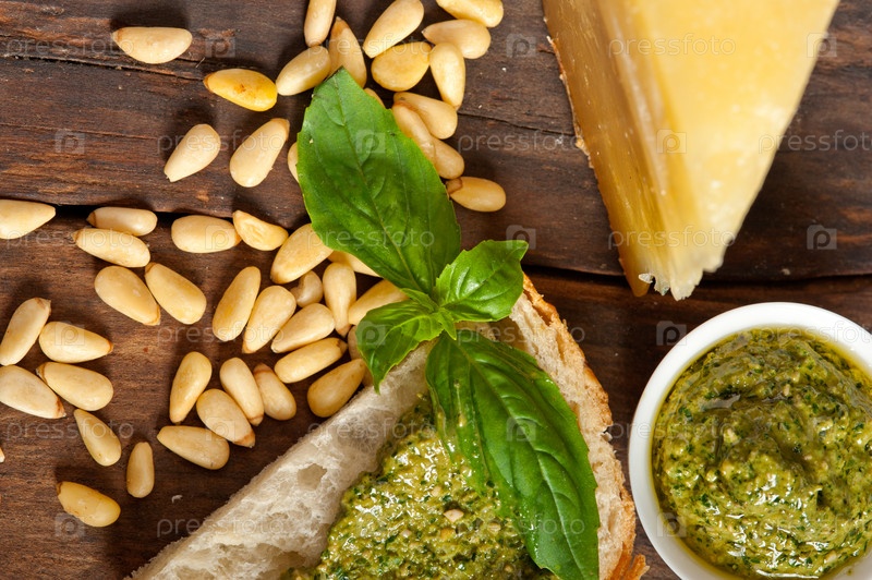 Ингредиенты для итальянской брускетты и песто с базиликом