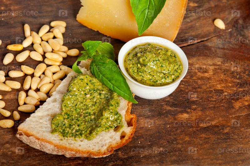 Ингредиенты для итальянской брускетты и песто с базиликом