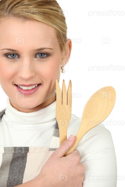 Блондинка с деревянной посудой