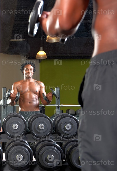 Зеркальное отражение двух мужчин, тренировка в тренажерном зале