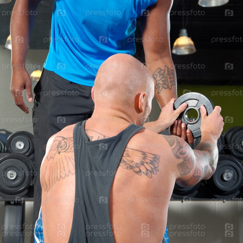 Мужчина с тренером в тренажерном зале