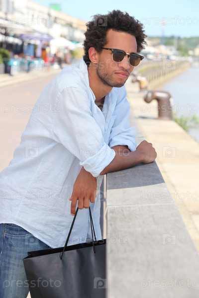 Человек гуляет по набережной в солнечный день