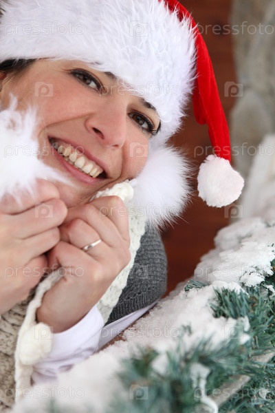 Веселая женщина в Рождество