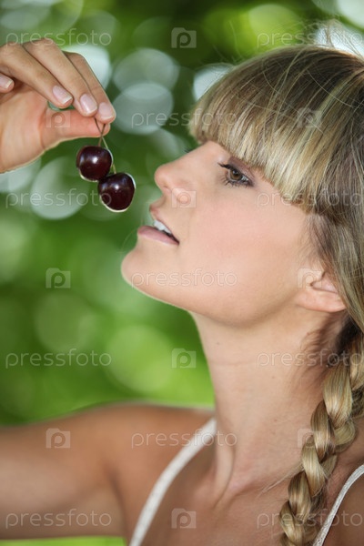 Женщина ест вишню