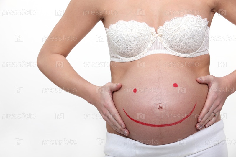Беременная женщина с улыбкой на животе