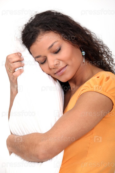 Женщина обнимает подушку