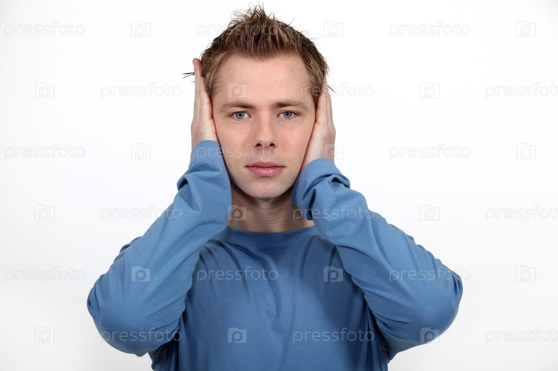 Мужчина закрывает уши