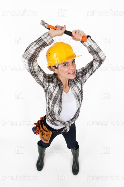 Женщина размахивает молотком